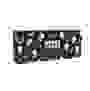 Eine große gepunktete Geschenkbox mit drei Paar Socken rechts davon auf grauem Hintergrund