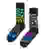 Two models wearing Good and Bad Pig Happy Socks, with the graphic of the sock featured in the middle to showcase our FW25 new collection.